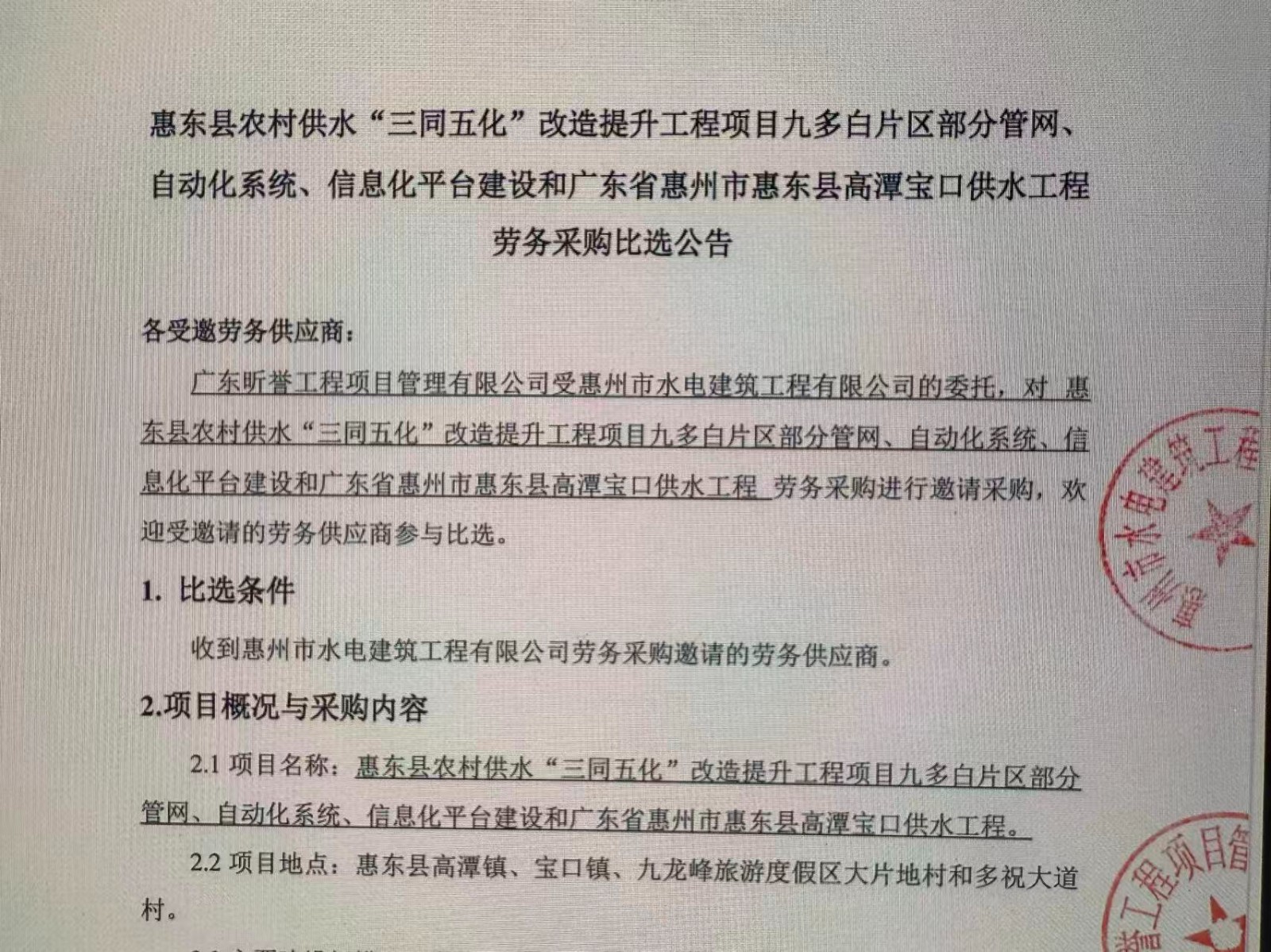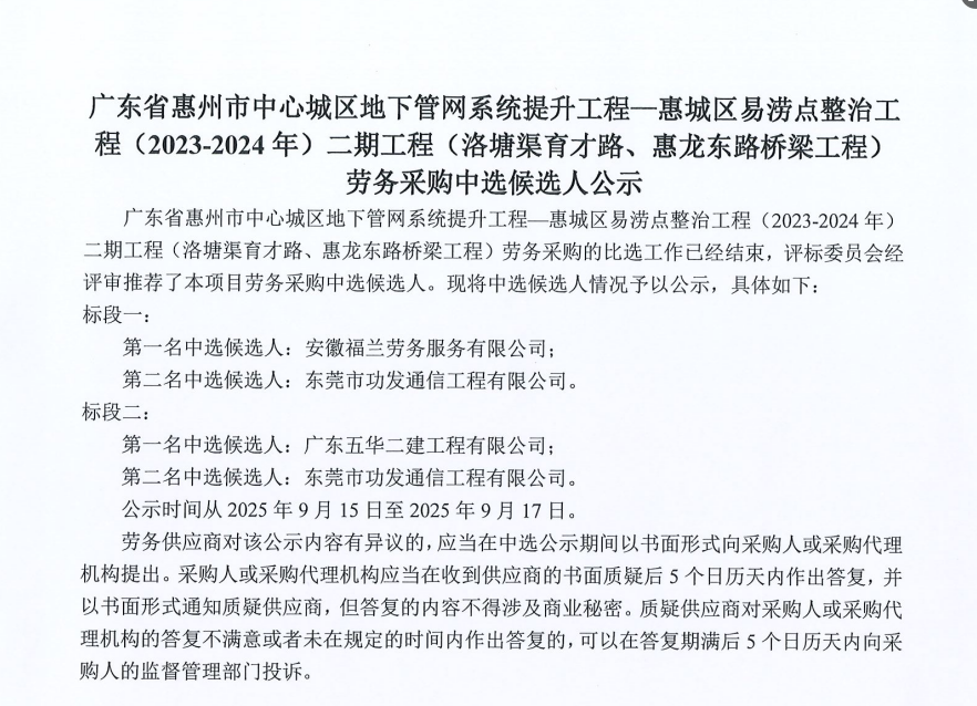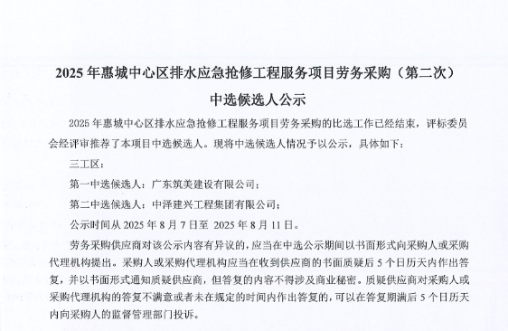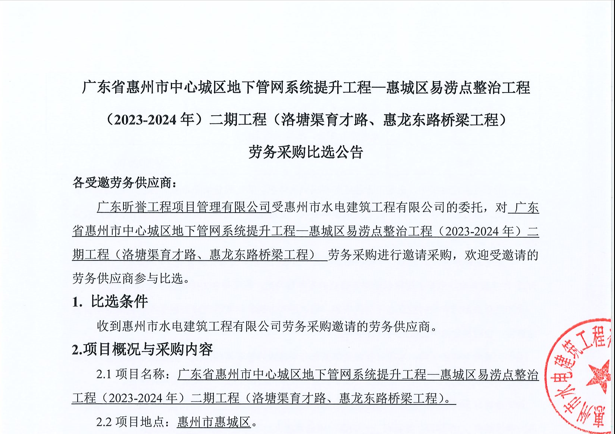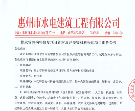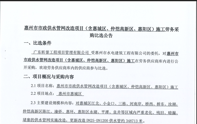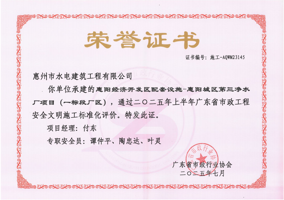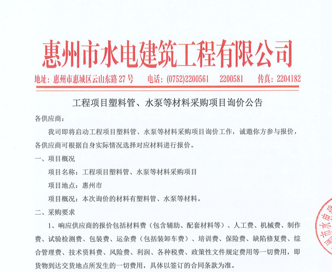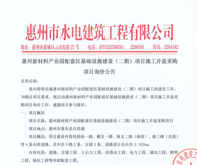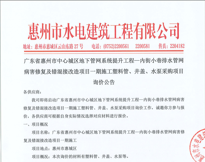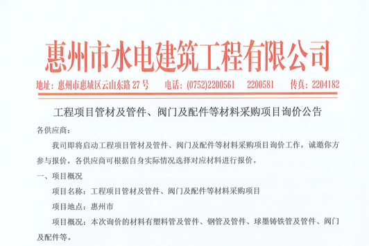 惠州市水電建筑工程有限公司成立于一九六四年四月,隸屬惠州市水務集團有限公司,是一家國有綜合性施工企業(yè),主營水利水電工程、房屋建筑、市政工程等施工業(yè)務。公司擁有水利水電工程施工總承包一級、建筑工程施工總承包一級、市政公用工程施工總承包一級、公路工程施工總承包三級,公路路基、路面及建筑裝修裝飾專業(yè)承包二級,環(huán)保工程、機電安裝、河湖整治、輸變電工程專業(yè)承包三級等經(jīng)營資質……